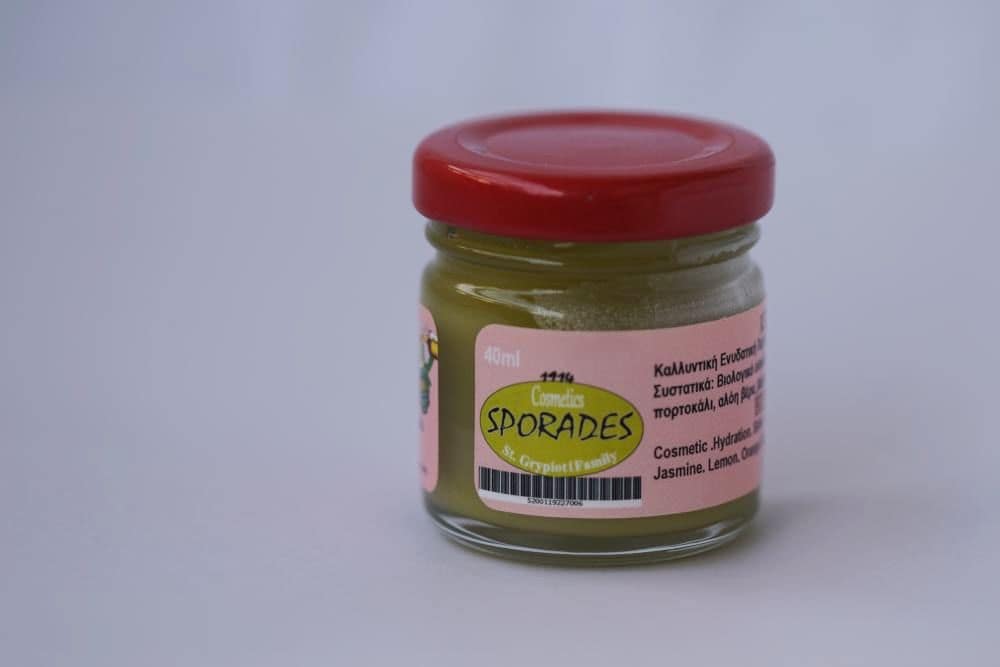 Συστατικά: Βιολογικό ελαιόλαδο, κερί μέλισσας , εκχυλίσματα από αιθέρια αρωματικά έλαια μέντα, γιασεμί, λεμόνι, πορτοκάλι, αλόη βέρα, βάλσαμο, σπαθόχορτο υπερικό το διάτρητο
