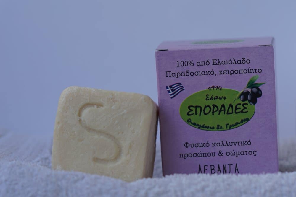 Με παράδοση ενός ολόκληρου αιώνα η οικογένεια Γρυπιώτη από την Σκόπελο, συνεχίζει να μας προσφέρει με την παραδοσιακή μέθοδο του βρασμού, ένα χειροποίητο, φυσικό καλλυντικό εμπλουτισμένο με αιθέριο έλαιο λεβάντας η οποία από την αρχαιότητα μέχρι σήμερα, πέρα από το υπέροχο φυσικό άρωμα της, χαρακτηρίζεται και από ιδιαίτερες αντισηπτικές και χαλαρωτικές ιδιότητες.